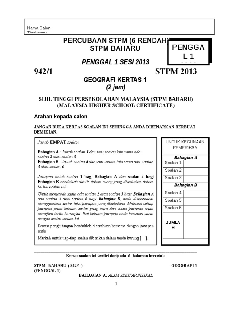 Soalan Perc Geografi Stpm 2013 Pg 1 Pdf