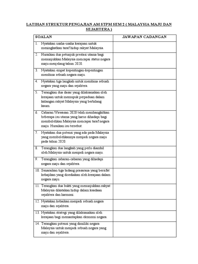 Latihan Struktur Pengajian Am Stpm Sem 2 Petunjuk Negara Maju Pdf